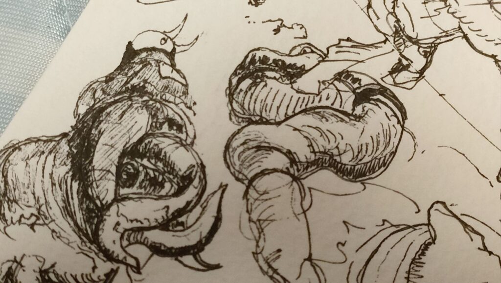スケッチブックの片隅で生まれた異形たちが、いつか作品のワンシーンや物語の重要な鍵になってくれたら嬉しい。今回のメモのような一枚たちが、未来の制作の種になっていくのだと思う。
