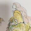 ペンである程度リアルに描いてみるのも面白い。布の重さ、フードの影、背中の丸み。線だけで質量を出す訓練になる。そしてその上に薄く色を置けば、現実と幻想の境界が曖昧になる。