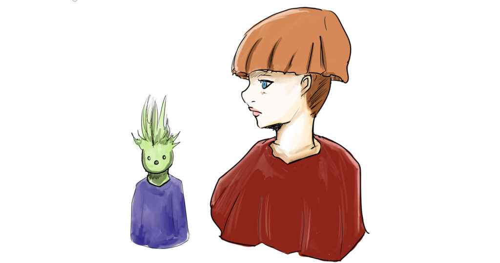 野菜が大切だということで、野菜のモンスターみたいなのを描いた。