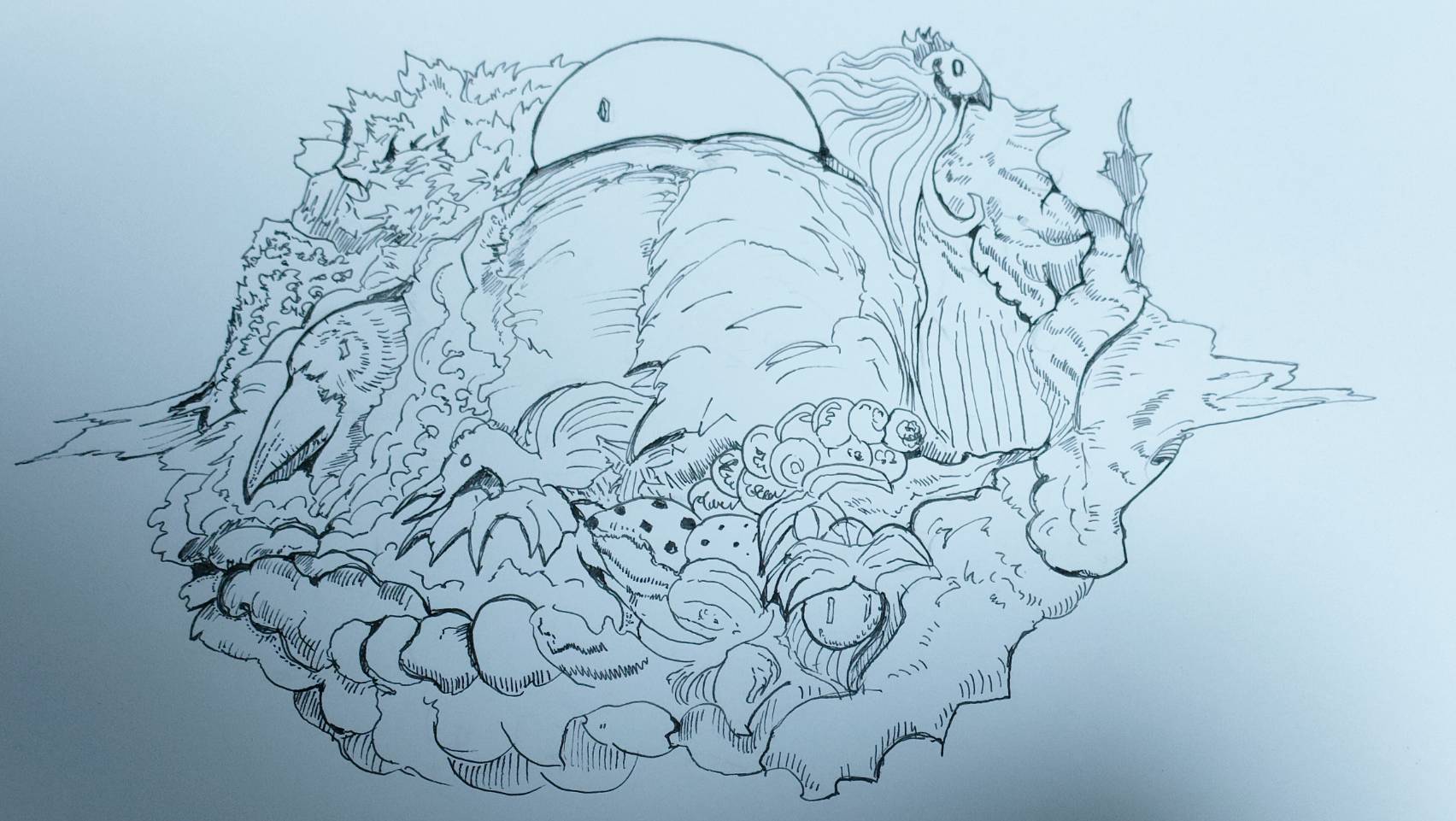 個ではなく集合。静止しているようでいて、常に変化し続けている。見ようとすれば形は曖昧になり、感じようとすれば確かにそこにある。そんな曖昧さと確かさを同時に持つものを、僕は描きたかった。